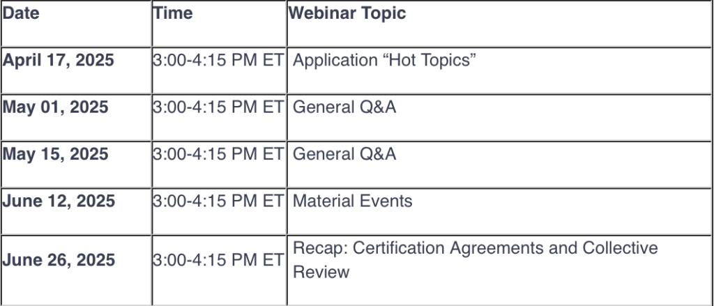 Updated CDFI Certification Webinar Schedule