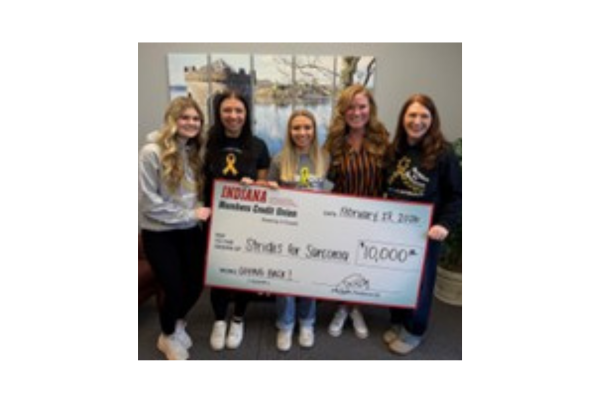 On behalf of Indiana Members Credit Union (IMCU) members, IMCU recently presented a check for $10,000 to Strides for Sarcoma as part of its exclusive Cancer Awareness Debit Card Program.